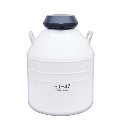 MVE液氮罐的ET系列是MVE高性價比優質產品系列,其47升產品ET-47/10及ET-47/6等型號為眾多實驗室及深冷儲存客戶所青睞,產品的精良設計及MVE一貫的品質保證,把產品細節做成產品可靠的保障,使得ET產品系列成為具有性價比的液氮罐產品。采用MVE一貫的大扣帽式蓋塞設計的47升液氮罐,黑色經典罐蓋,可選配6提桶或者10提桶配置。